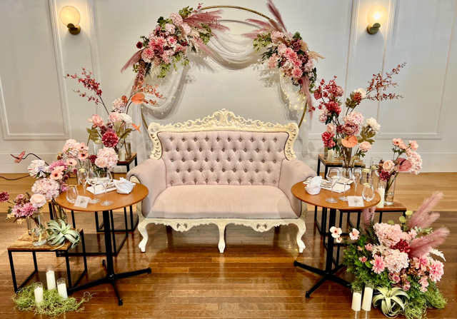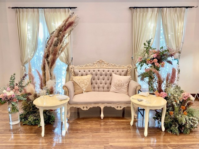 ・写真はイメージです、ご希望に合わせてカスタマイズ可能。ソファー、料理用サイドテーブルは会場のものを使用。