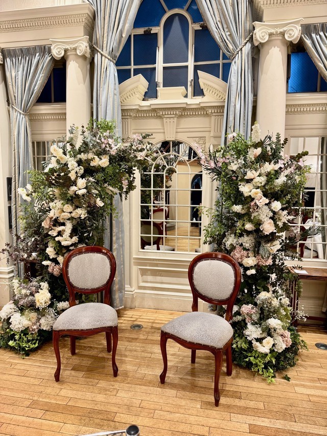 フラワーデザイナーが会場のスケールや写真映えを考慮して設計。
