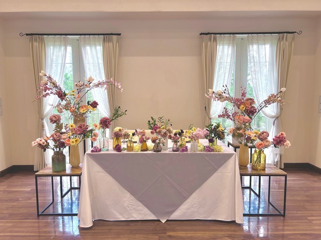 衛生上の都合で装花の持ち込み不可の式場でも造花であれば問題なし!(式場様にご確認下さい)